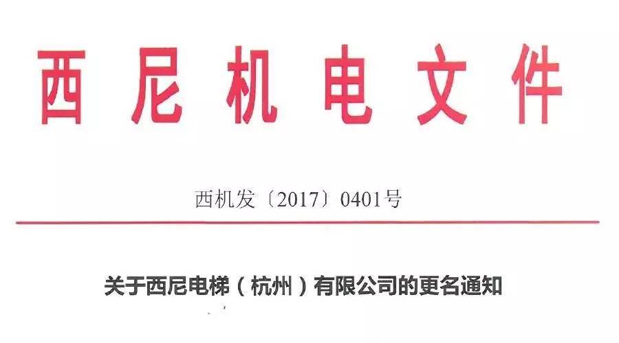 關(guān)于“西尼電梯”正式更名為“西尼機(jī)電”的文件通知